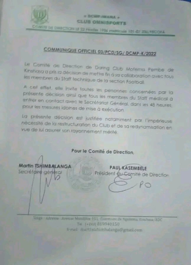 Ce Dimanche au stade des martyrs de la pentecôte, Le Daring Club Motema pembe( DCMP) à la recherche d’une victoire dans ce début du compétition, croisera les fers face à MANIEMA UNION, en match avancé de la 11ème journée du championnat national d’élite congolais.